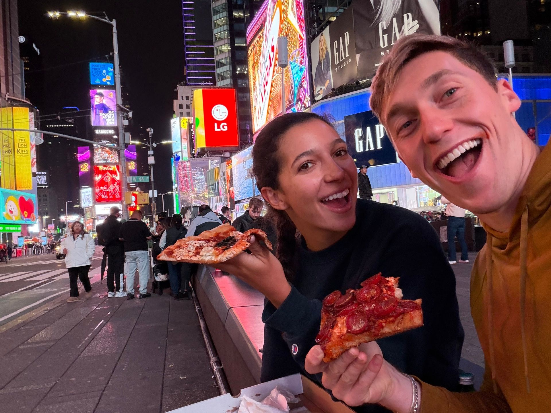 Me and my friend Liz enjoying pizza at times square after Othership.
